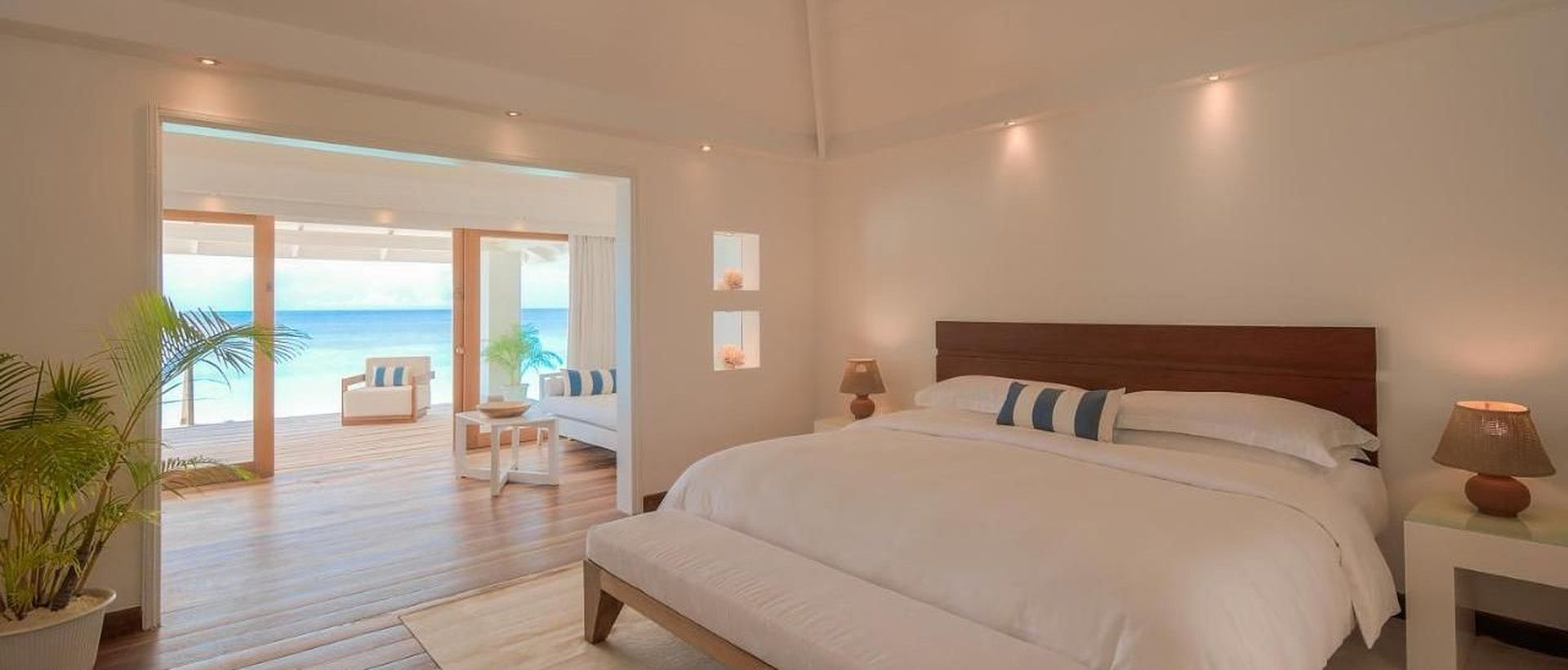 Номер уютный, со всем необходимым, чайник, капсульная кофемашина, бесплатная вода в номере в огромном количестве, банные принадлежности фирмы Amouage, утюг с гладильной доской.Большая красивая территория, внимательное обслуживание на пляже.