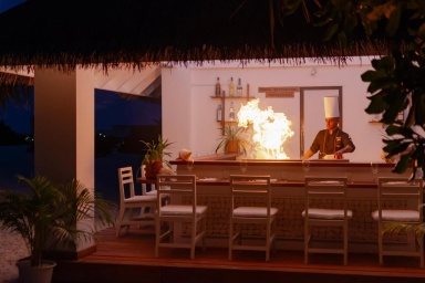 , что добавляло уюта и уединенности. Обратили внимание, что все тут ходят босиком, даже на завтрак обед и ужин. То есть обстановка в отеле расслабленная, нет никакого шума, движухи, все, чтобы побыть наедине с собой или с семьей. Жена ходила на йогу, вставала в 6 утра, ей там очень понравилось, прямо на рассвете занятия. Сервис - просто песня. Все на высшем уровне, то есть ты не успеешь нажать кнопку "Убрать номер", а персонал уже у ваших дверей. Официантов ни о чем не надо просить, они сами все всегда предложат, а если нет каких-то приборов или воды, то замечают это за километр и сразу сами приносят. Еда: нет ничего приевшегося, каждый день новые угощения, причем разные кухни. И важно: была постоянная возможность есть свежие морепродукты каждый день на гриле.
